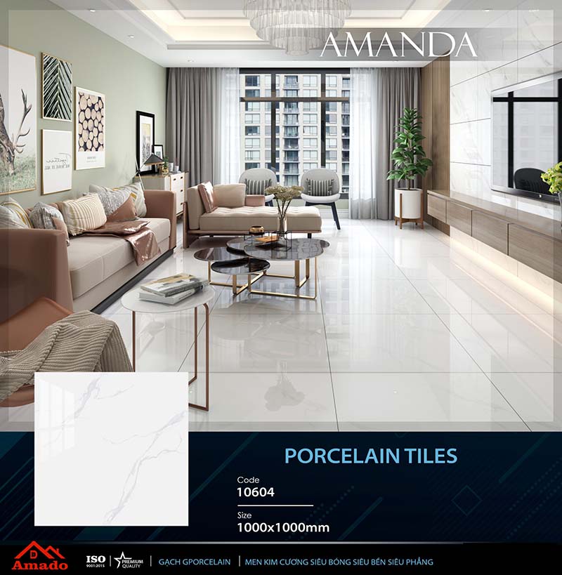 Gạch 1m (1000x1000mm) của thương hiệu AMADO là dòng gạch cao cấp mang đậm phong cách hiện đại, sang trọng, được thiết kế dành riêng cho những không gian sống đẳng cấp. Với kích thước lớn, bề mặt siêu bóng hoặc nhám mờ tinh tế, gạch 1m AMADO tạo cảm giác rộng rãi, liền mạch và đẳng cấp cho các khu vực như phòng khách, sảnh lớn, biệt thự, khách sạn hay trung tâm thương mại.