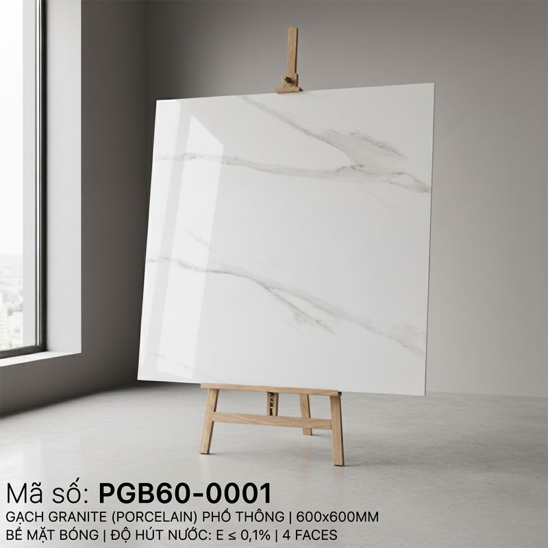 Gạch PGB60-0001 Porugia Thạch Bàn Bề Mặt Bóng Kính Nhà sản xuất Gạch Thạch Bàn, Kích thước: 600x600mm là Loại Gạch xương Porcelain.