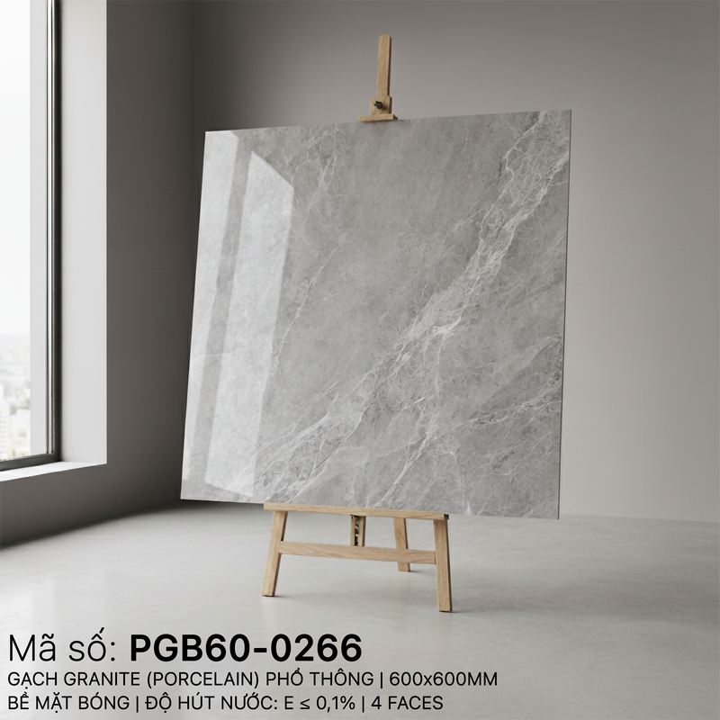 Gạch PGB60-0266 Porugia Thạch Bàn Bề Mặt Bóng Kính Nhà sản xuất Gạch Thạch Bàn, Kích thước: 600x600mm là Loại Gạch xương Porcelain.