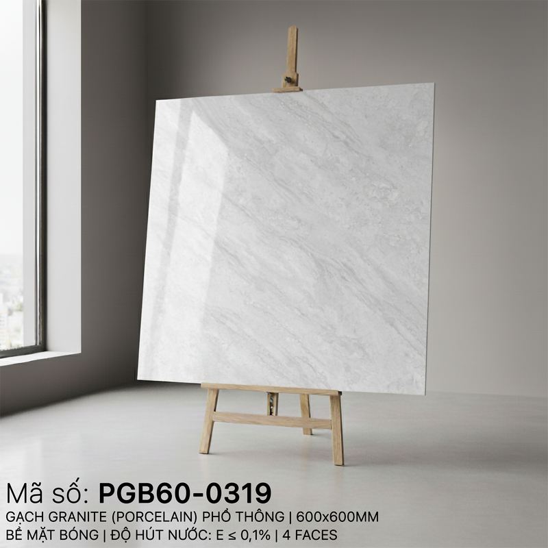 Gạch PGB60-0319 Porugia Thạch Bàn Bề Mặt Bóng Kính Nhà sản xuất Gạch Thạch Bàn, Kích thước: 600x600mm là Loại Gạch xương Porcelain.