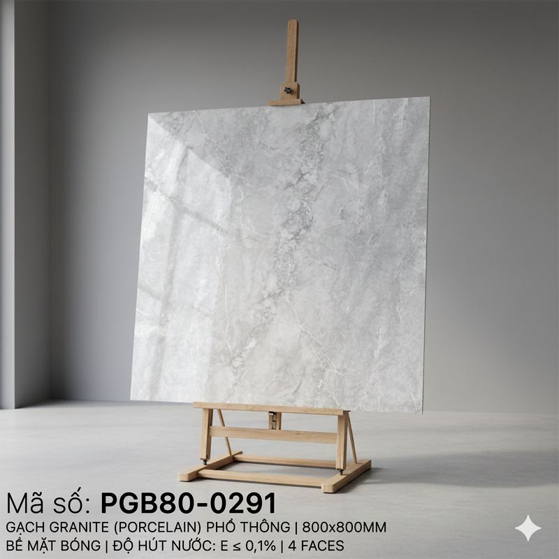 Gạch PGB80-0291 Porugia Thạch Bàn Bề Mặt Bóng Kính Nhà sản xuất Gạch Thạch Bàn, Kích thước: 800x800mm là Loại Gạch xương Porcelain.